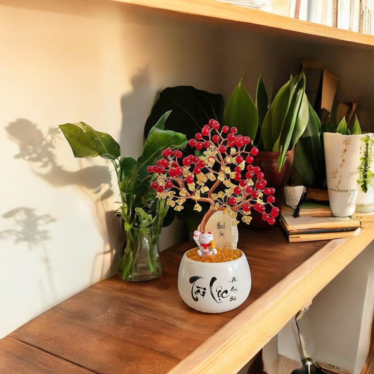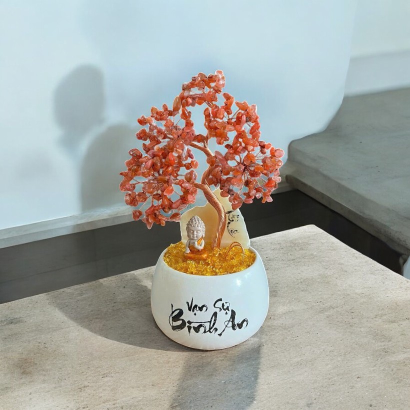 Cây tài lộc đá thạch anh đỏ – 25cm